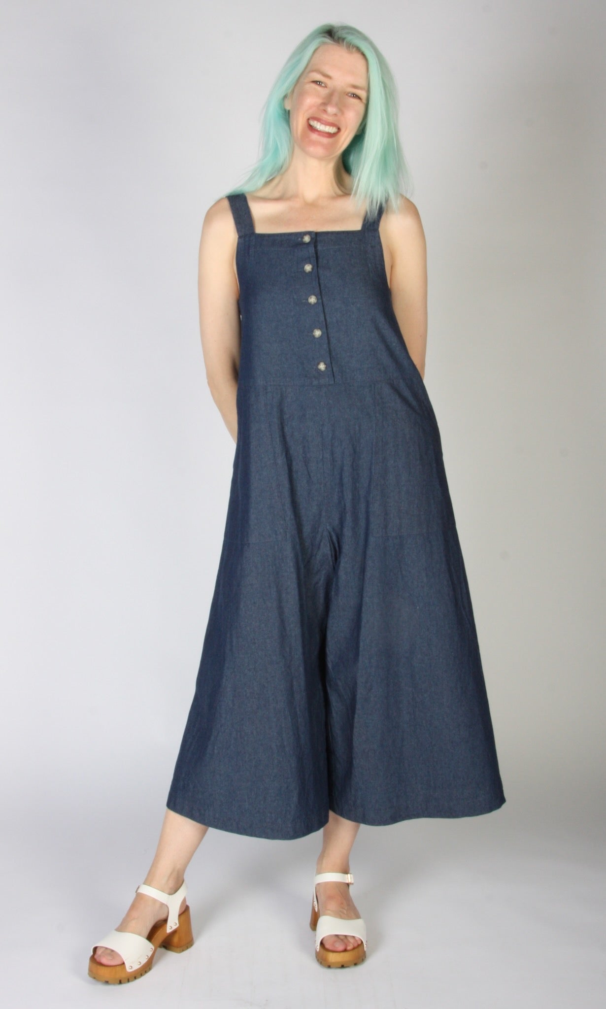 La combinaison Firecrest est facile à enfiler et possède des poches ainsi qu'une fermeture boutonnée sur le devant. Confectionnée en denim de coton certifié OEKO-TEX® très doux et léger, elle a été prélavée.