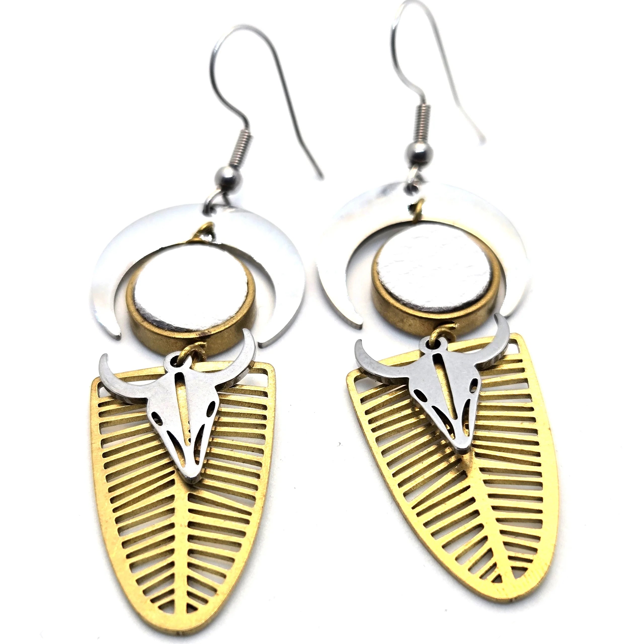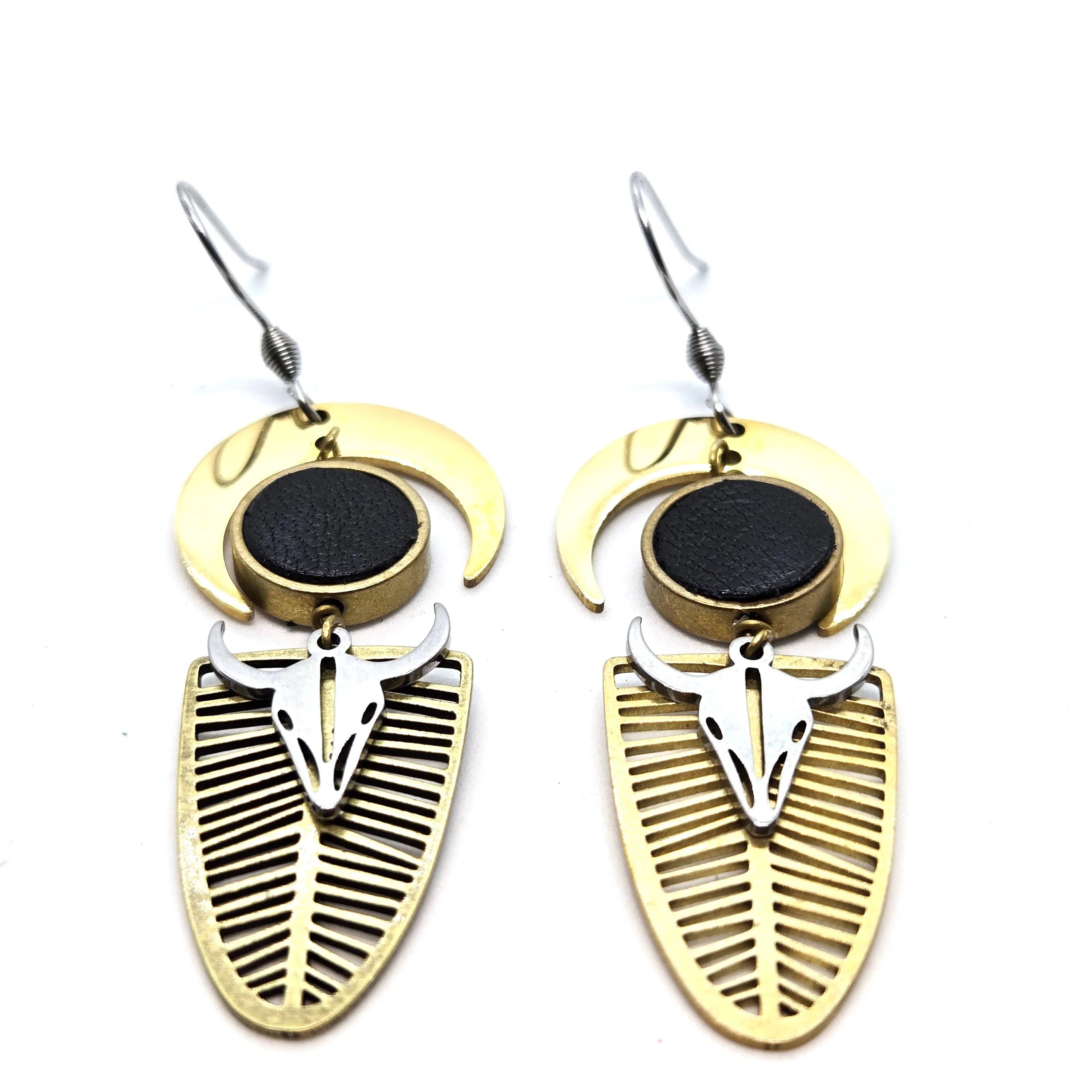 Matériaux : crochet hypoallergénique en acier inoxydable, breloque en laiton et alliage de zinc recouvert. Anneau laiton, intérieur en cuir.