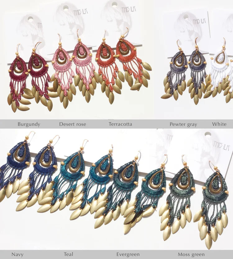 Ces boucles d'oreilles pendantes en dentelle en forme de larme sont le style parfait d'esprit libre qui reste un incontournable de notre collection de bijoux. Inspirés de l'Inde et de la culture hindoue qui rend hommage aux ors brillants et aux tissus complexes de haute qualité, ils sont extrêmement légers et pendent parfaitement.