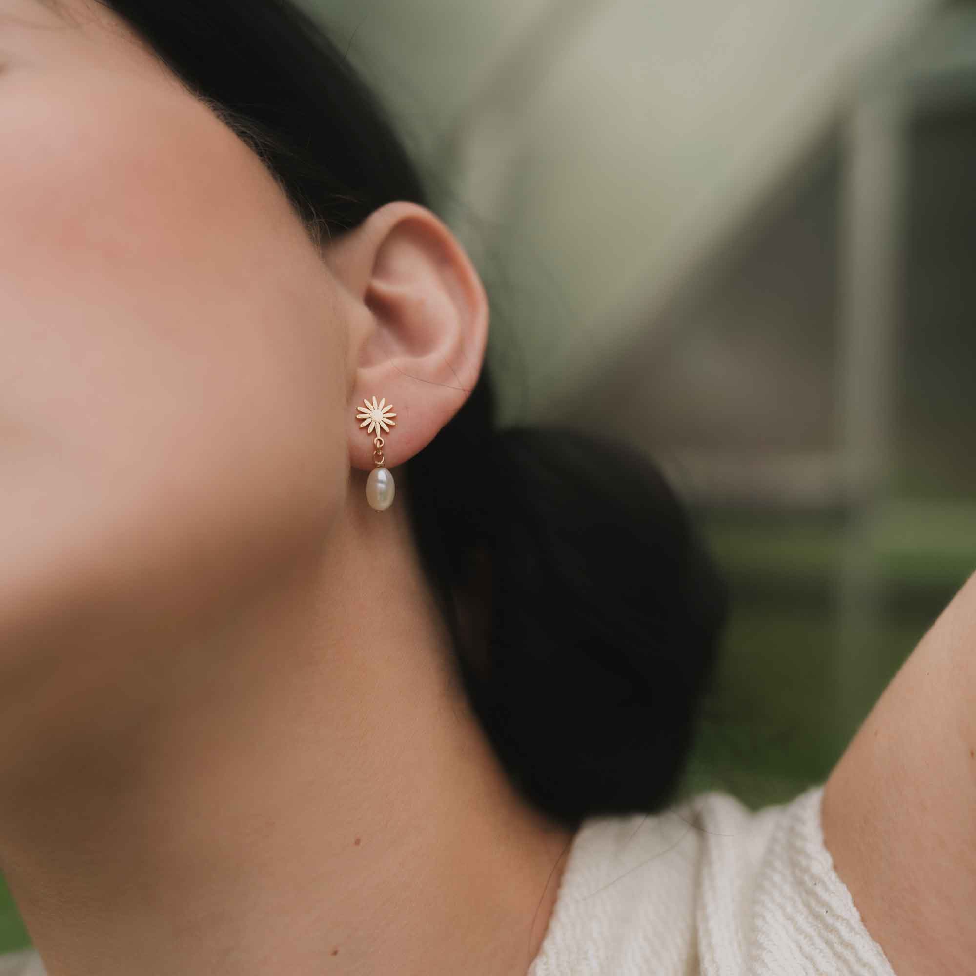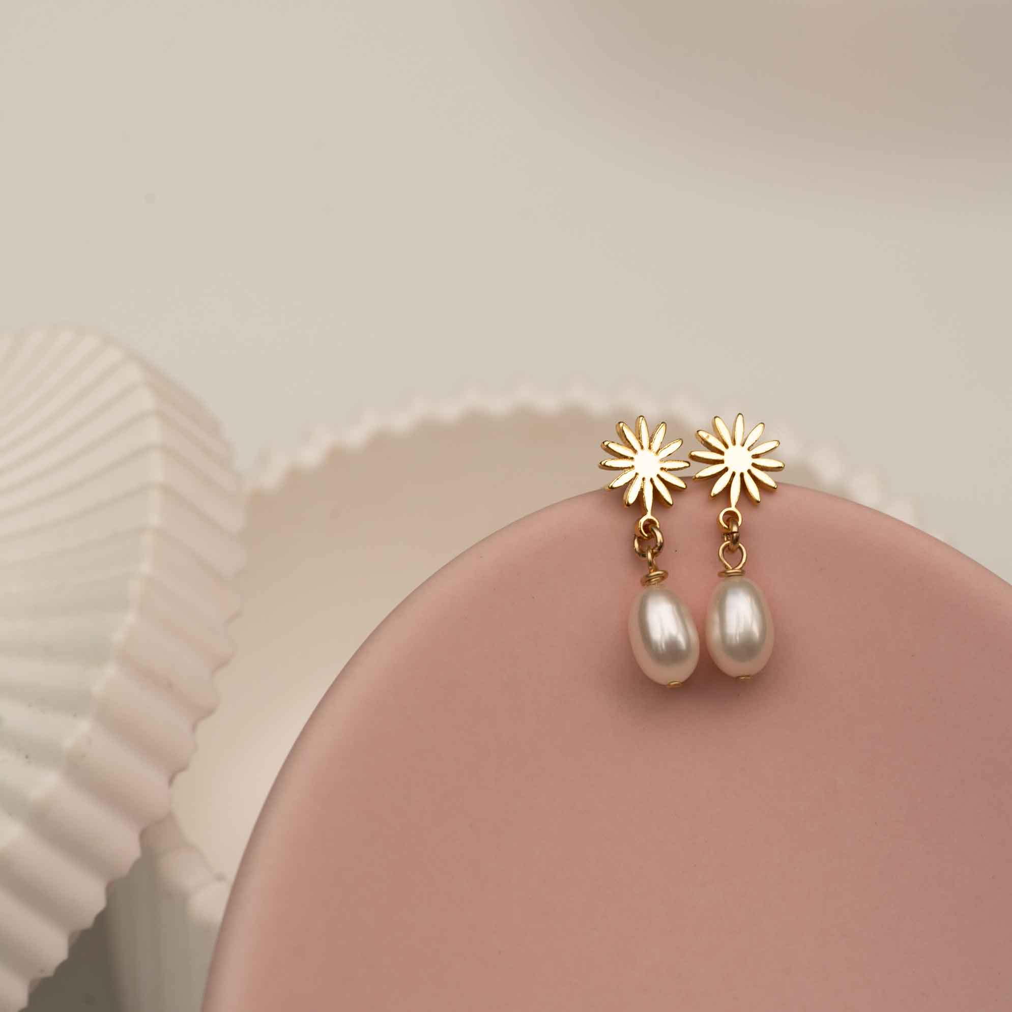 Jolies boucles d'oreilles à fleurs ornées de perles d'eau douce et de clous d'oreilles en plaqué or.