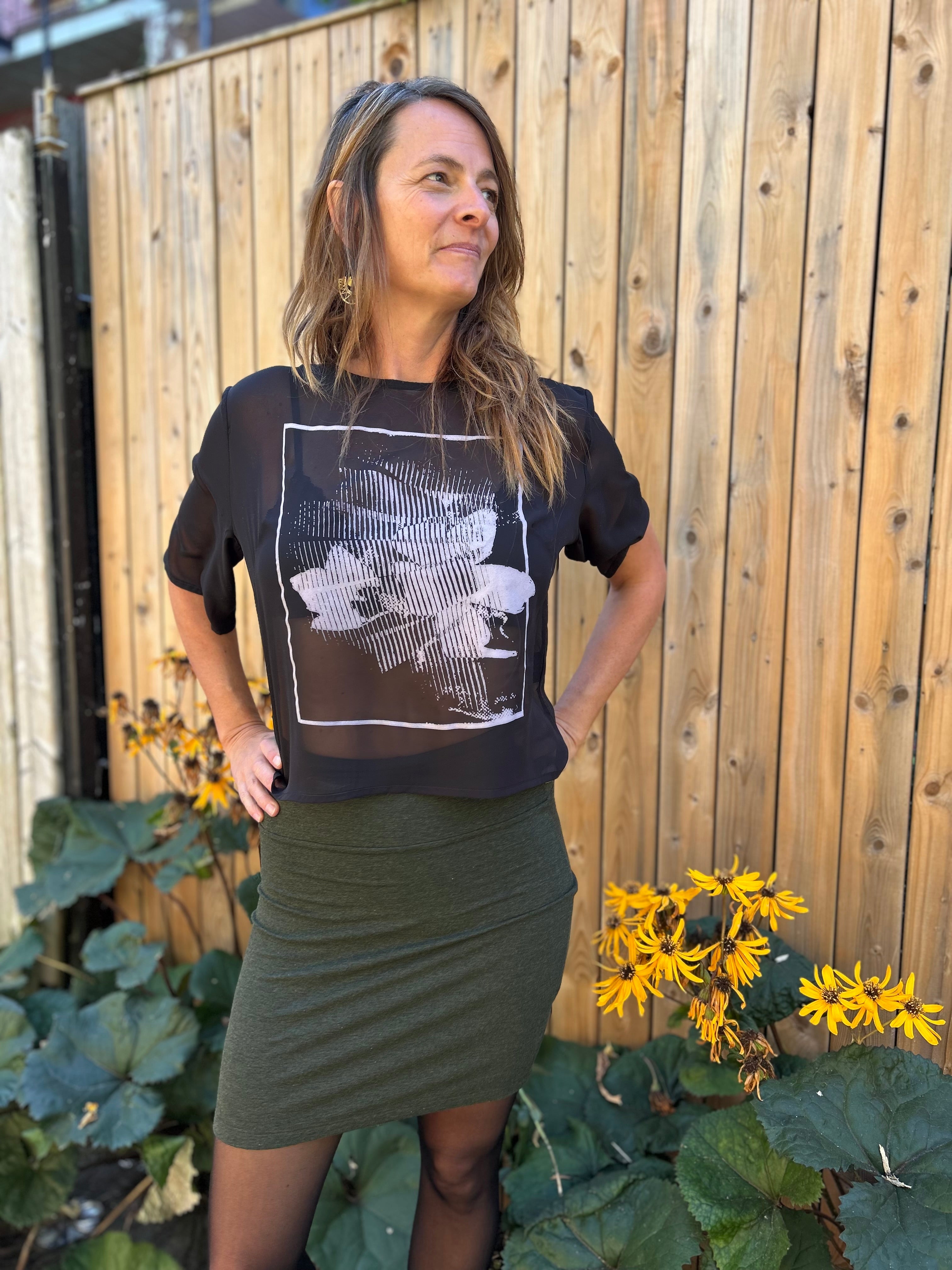 Jupe pratique à bande de taille élastique épousant les courbes à la perfection. Taille haute ou taille basse? Il suffit de replier la bande élastique pour obtenir la taille désirée !