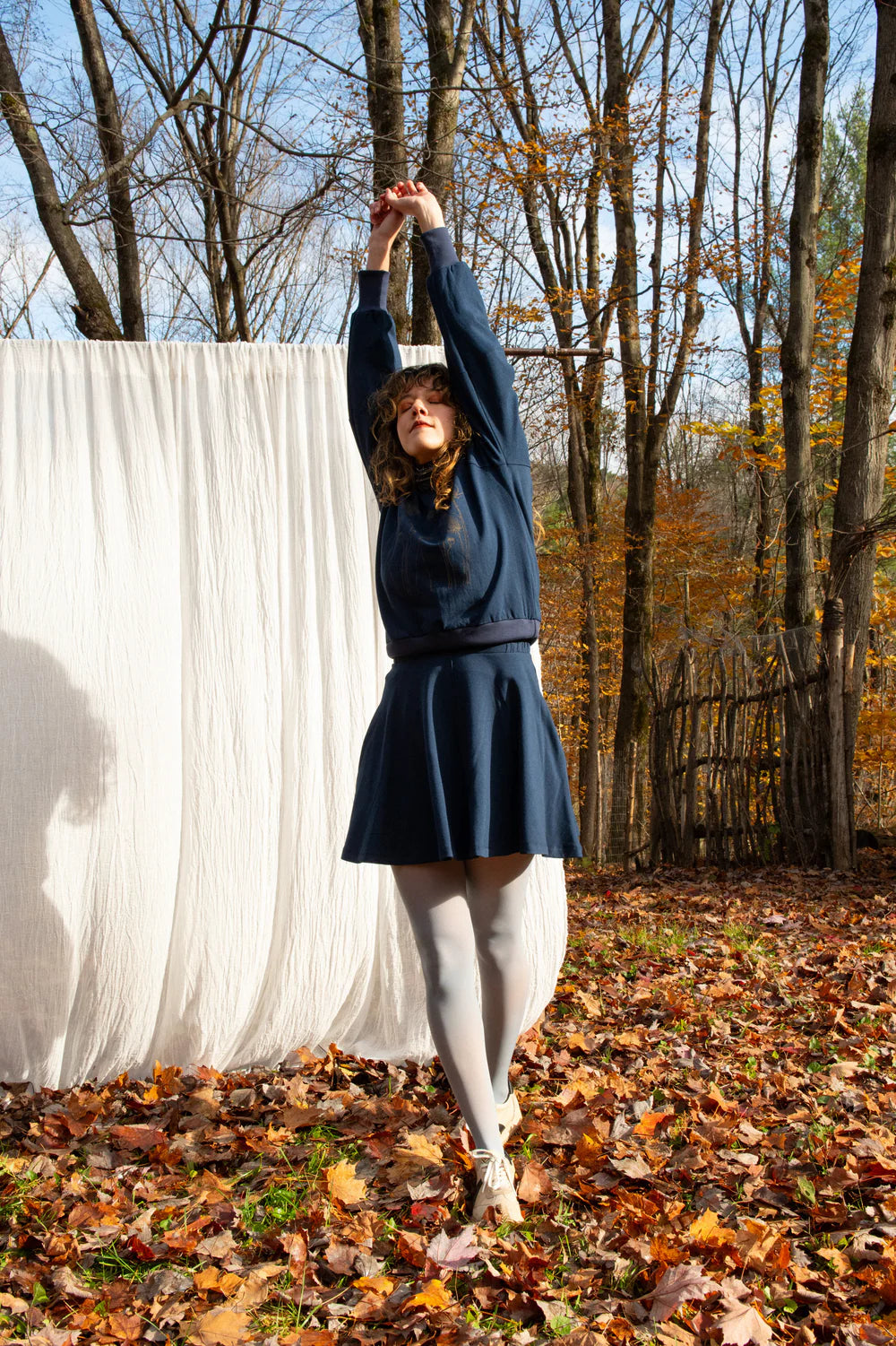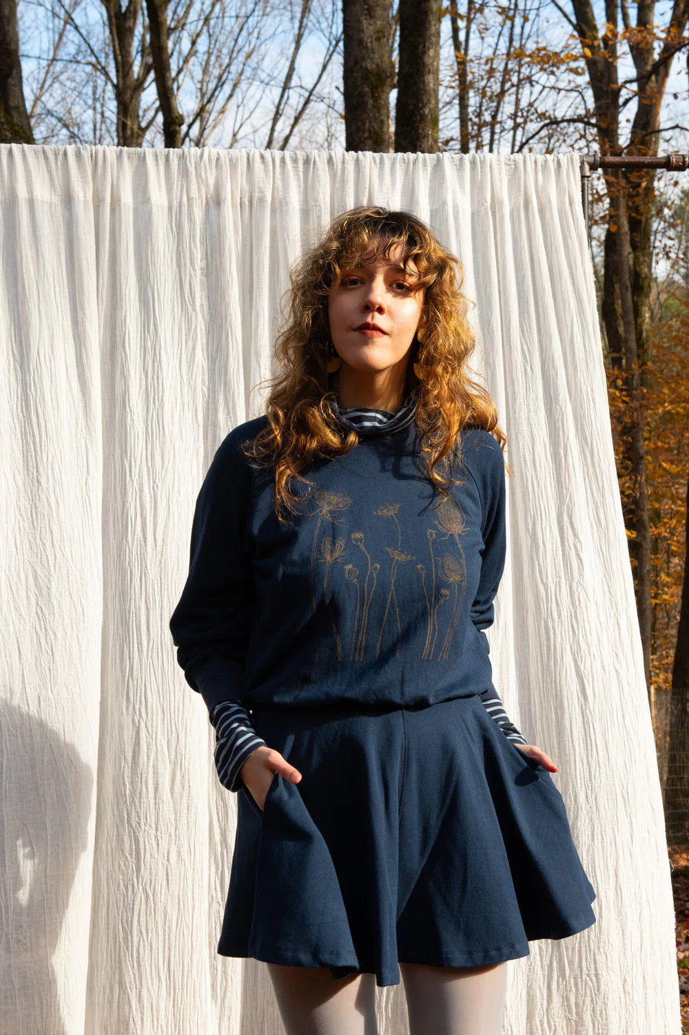 Cette jupe circulaire a une taille élastique qui la rend confortable et pratique.