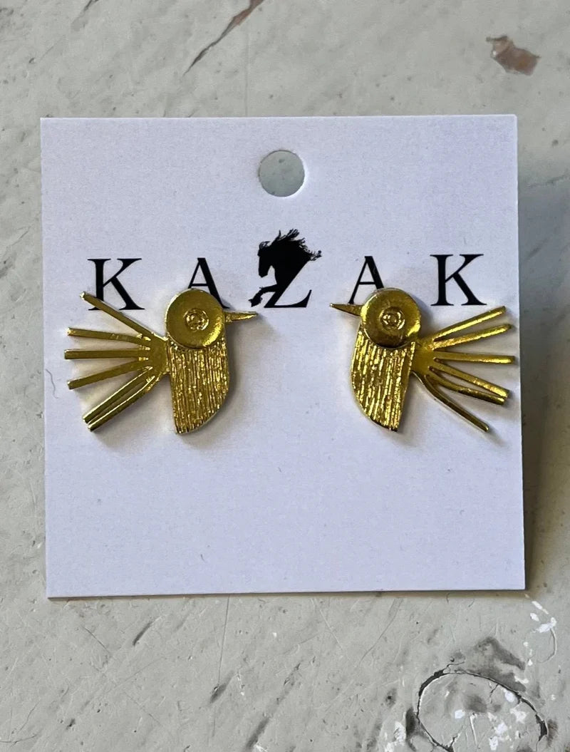 Boucles d'oreilles en laiton en forme de ColibriPin d'oreille.