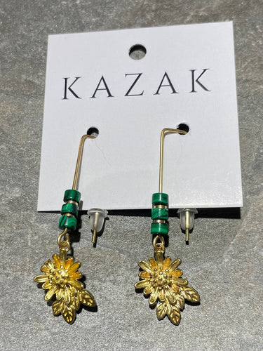 Boucles d'oreilles faites de laiton et pierres semi-précieuses.