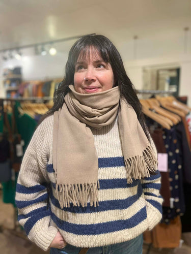 Grand châle rectangulaire avec franges se portant de plusieurs façons.