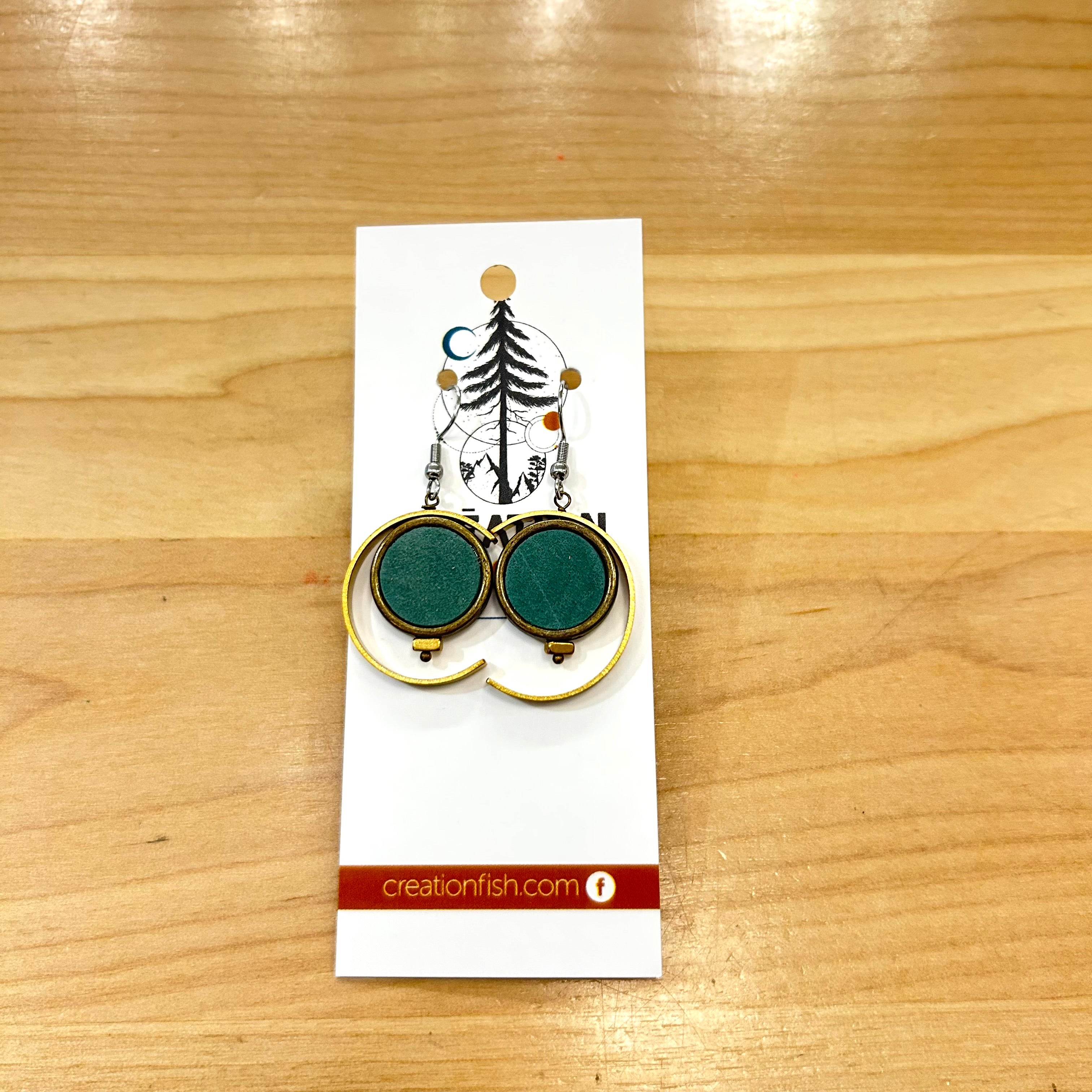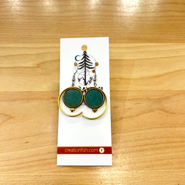 Superbes boucles d’oreilles Modèle C. Faites à partir de cuir et liège recyclés, elles ont un style tout à fait unique qui vous donneront de la personnalité.