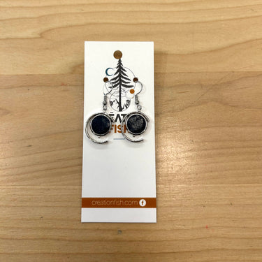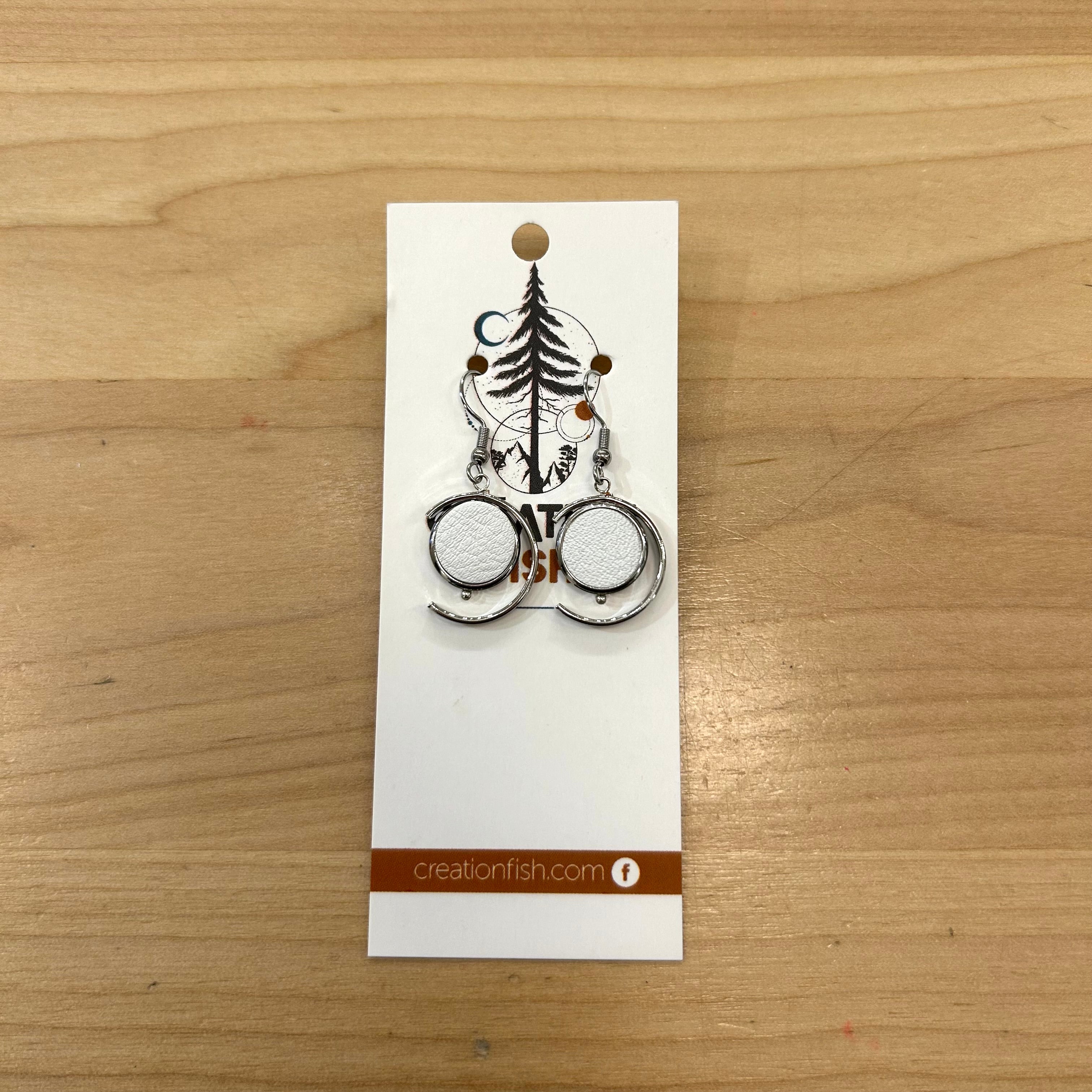 Superbes boucles d’oreilles Modèle C Mini. Faites à partir de cuir et liège recyclés, elles ont un style tout à fait unique qui vous donneront de la personnalité.