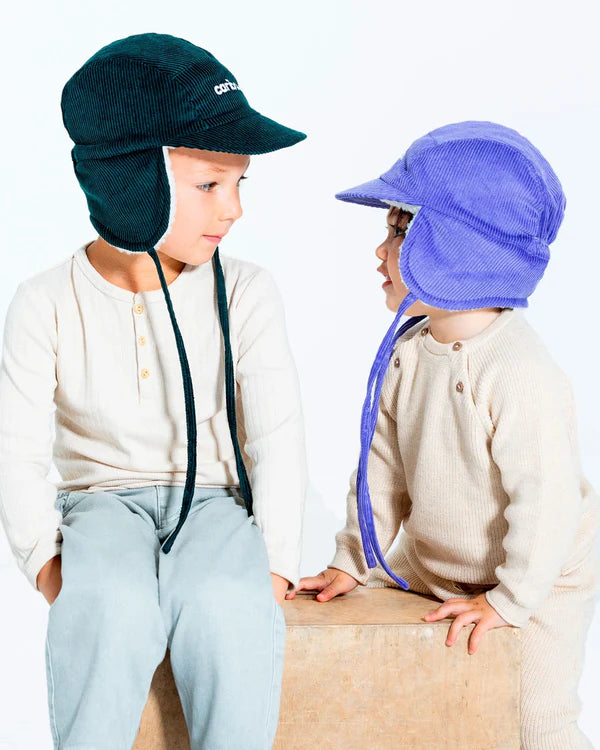 Casquette d'hiver en velours côtelé avec intérieur en sherpa. Couvre les oreilles et la nuque et s'attache avec un cordon. Ajustement facile grâce à un élastique intégré à l'arrière. Broderie sur le panneau avant. La version hivernale de notre casquette classique à 5 panneaux!