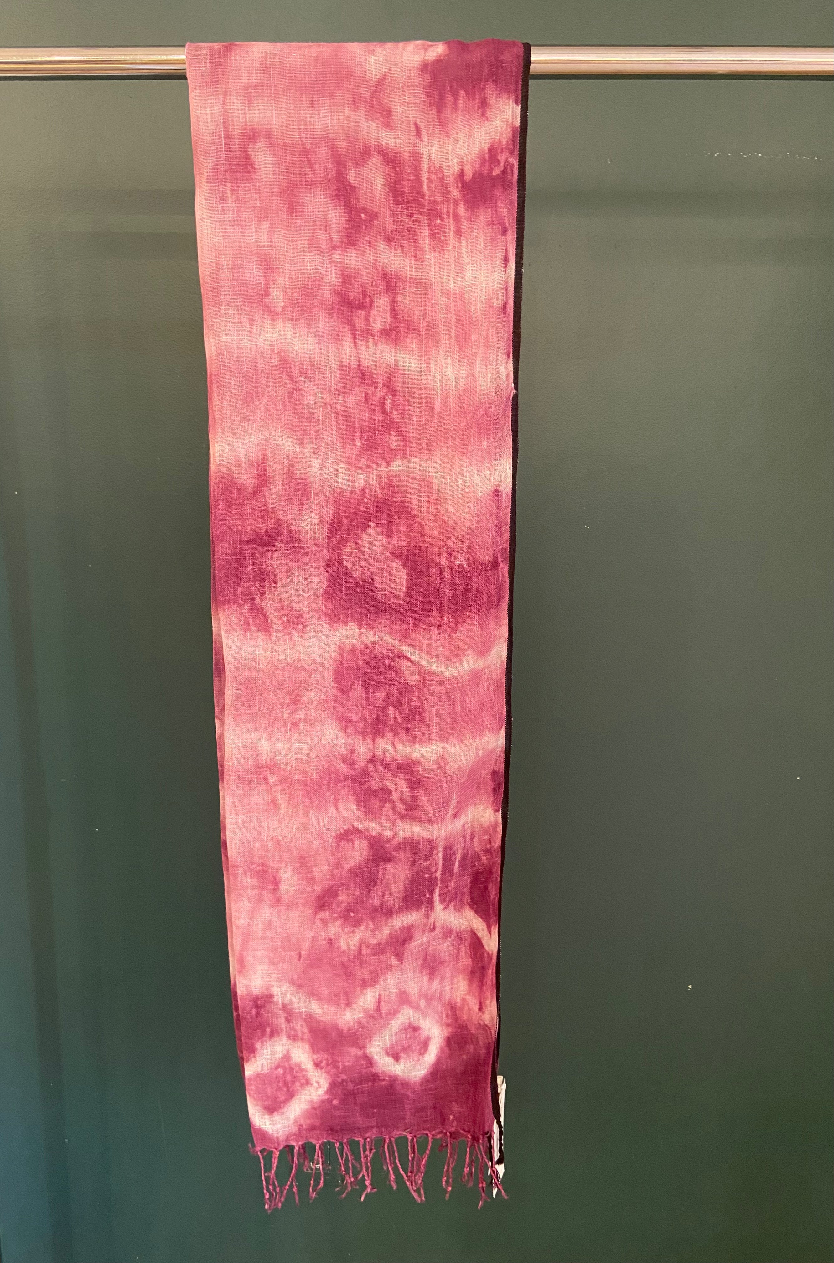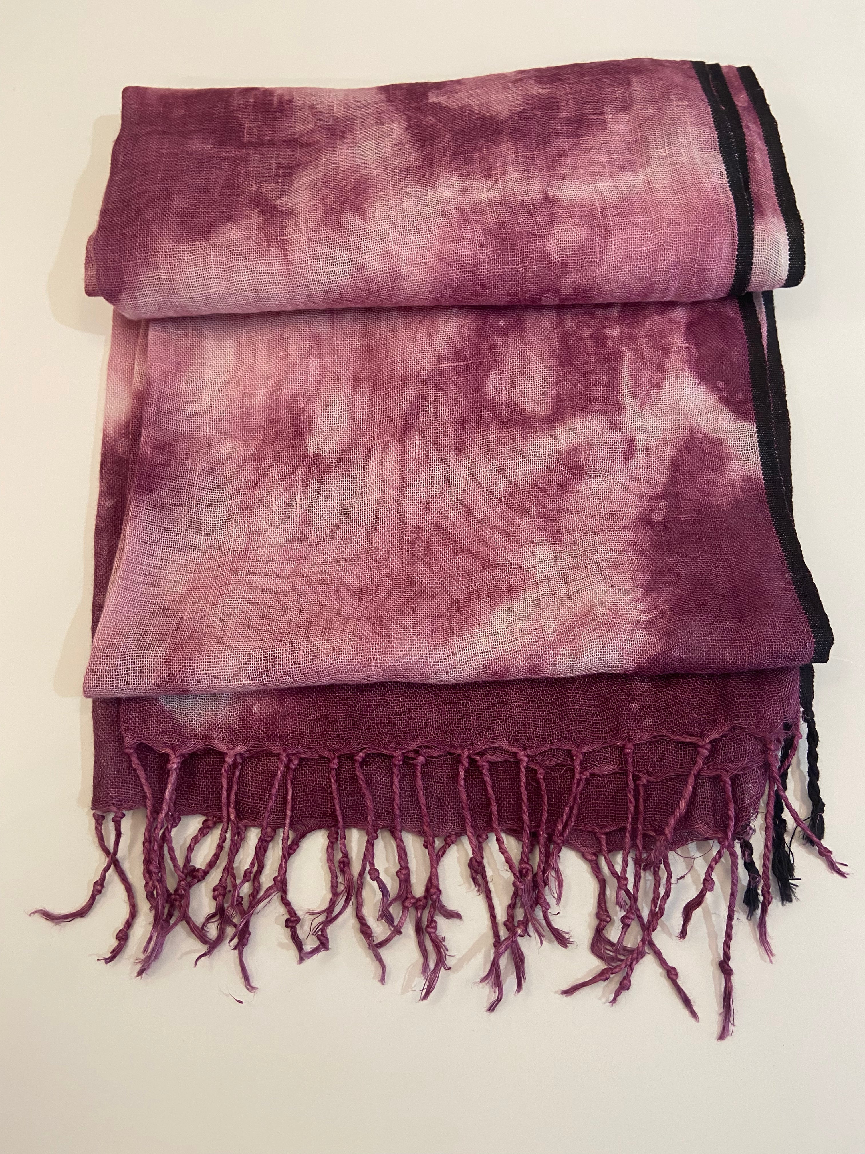 Châle 100% lin teint et imprimé à la main.