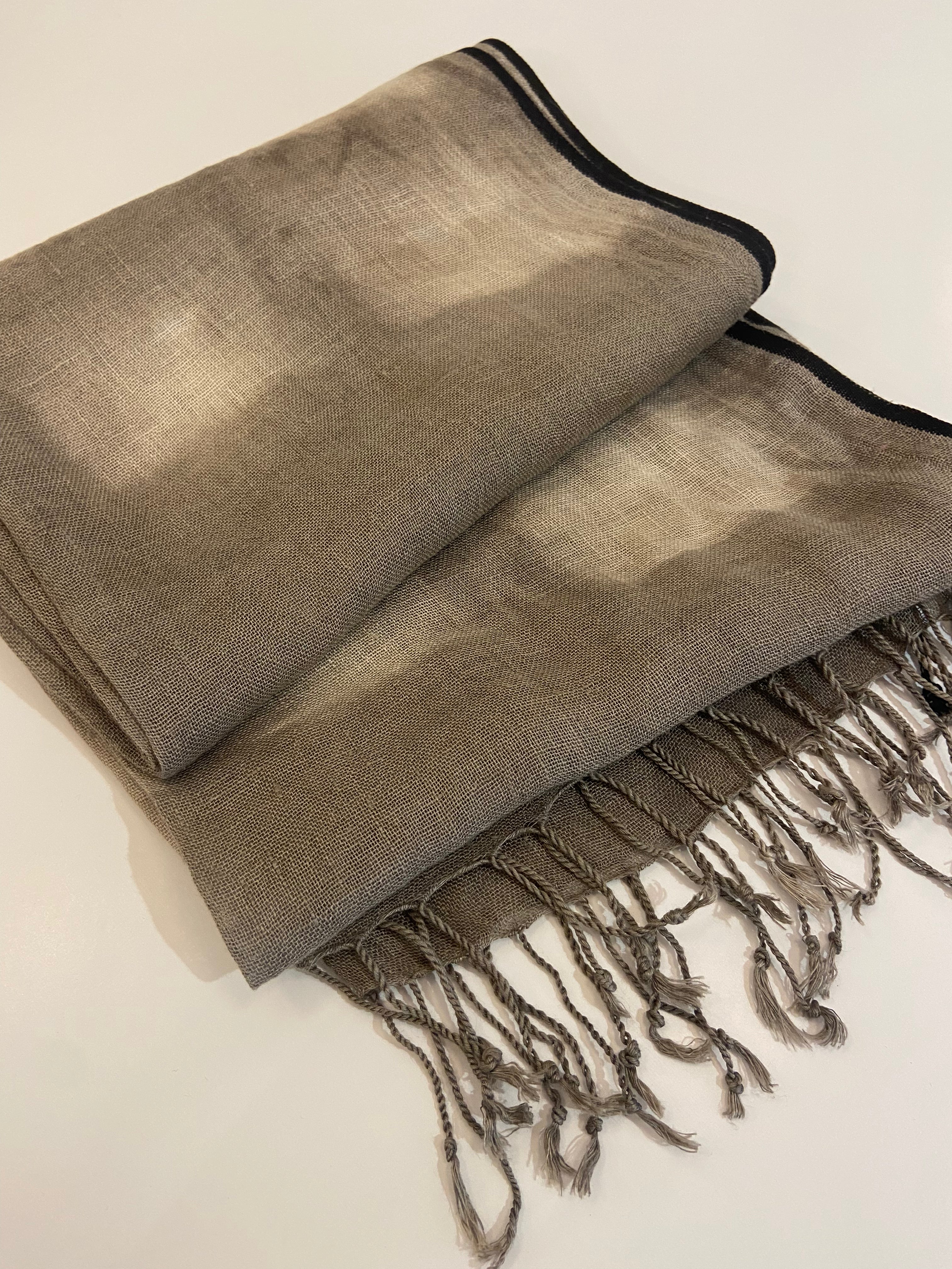 Châle 100% lin teint et imprimé à la main.