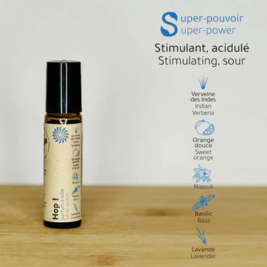 Notes de Verveine des Indes, Orange douce, Niaouli, Basilic et Lavande.