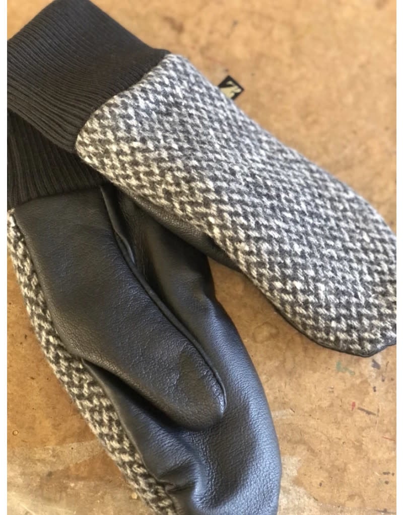 Paire de mitaines faites en cuir et suède recyclés, avec poignets en rib.