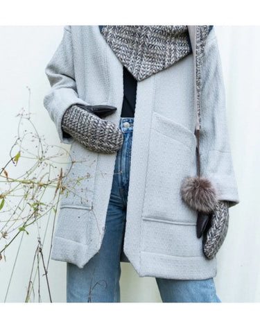 Paire de mitaines faites en cuir et suède recyclés, avec poignets en rib.