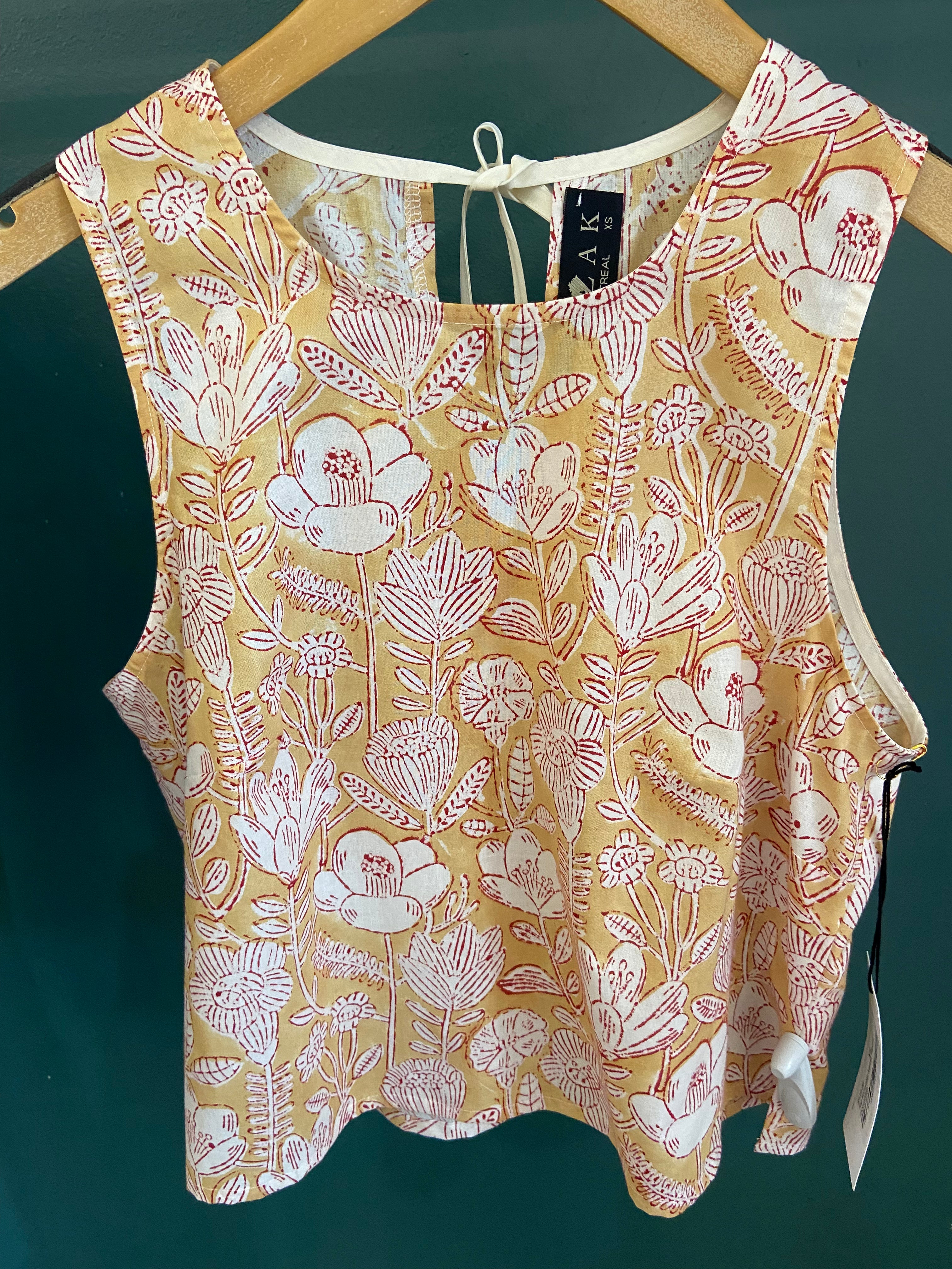 Top 100% coton, estampé à la main.