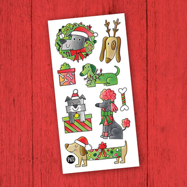 Les mignons chiens de Noël sont les tatouages parfaits pour tous les amoureux des chiens. Ils ont mis leurs plus beaux habits des fêtes et seront cachés parmi les cadeaux.  Apportez-les avec vous lors de vos célébrations des fêtes pour faire des heureux.