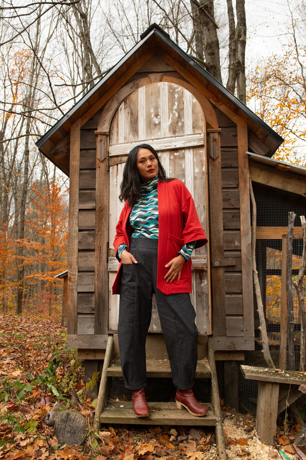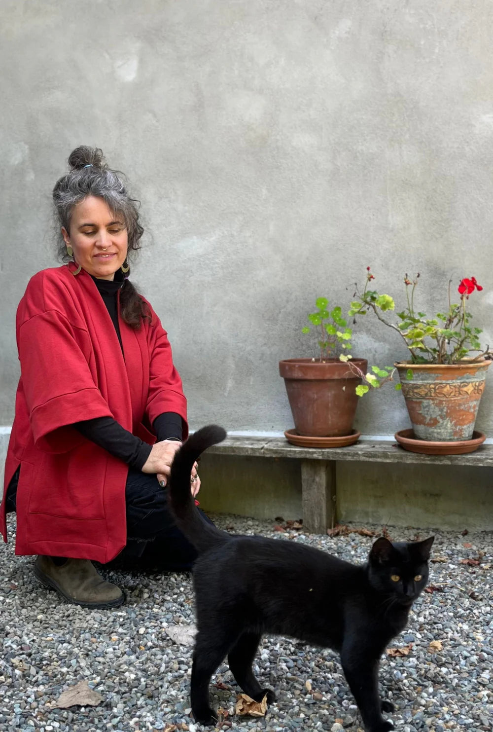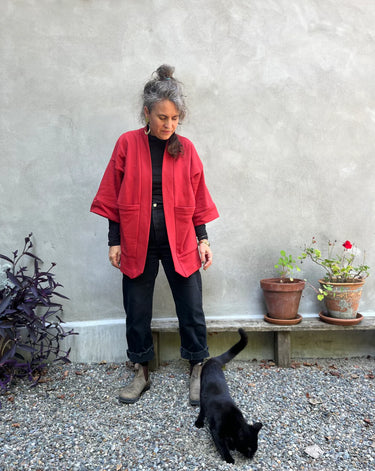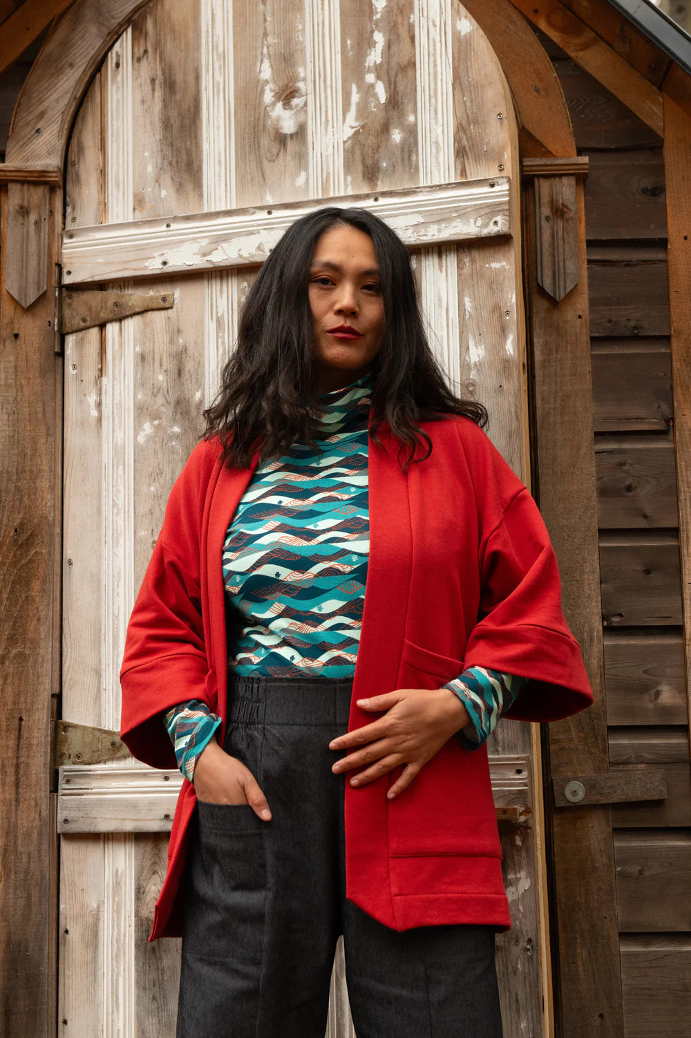 Veste avec manches 3/4 de type Kimono et grandes poches.