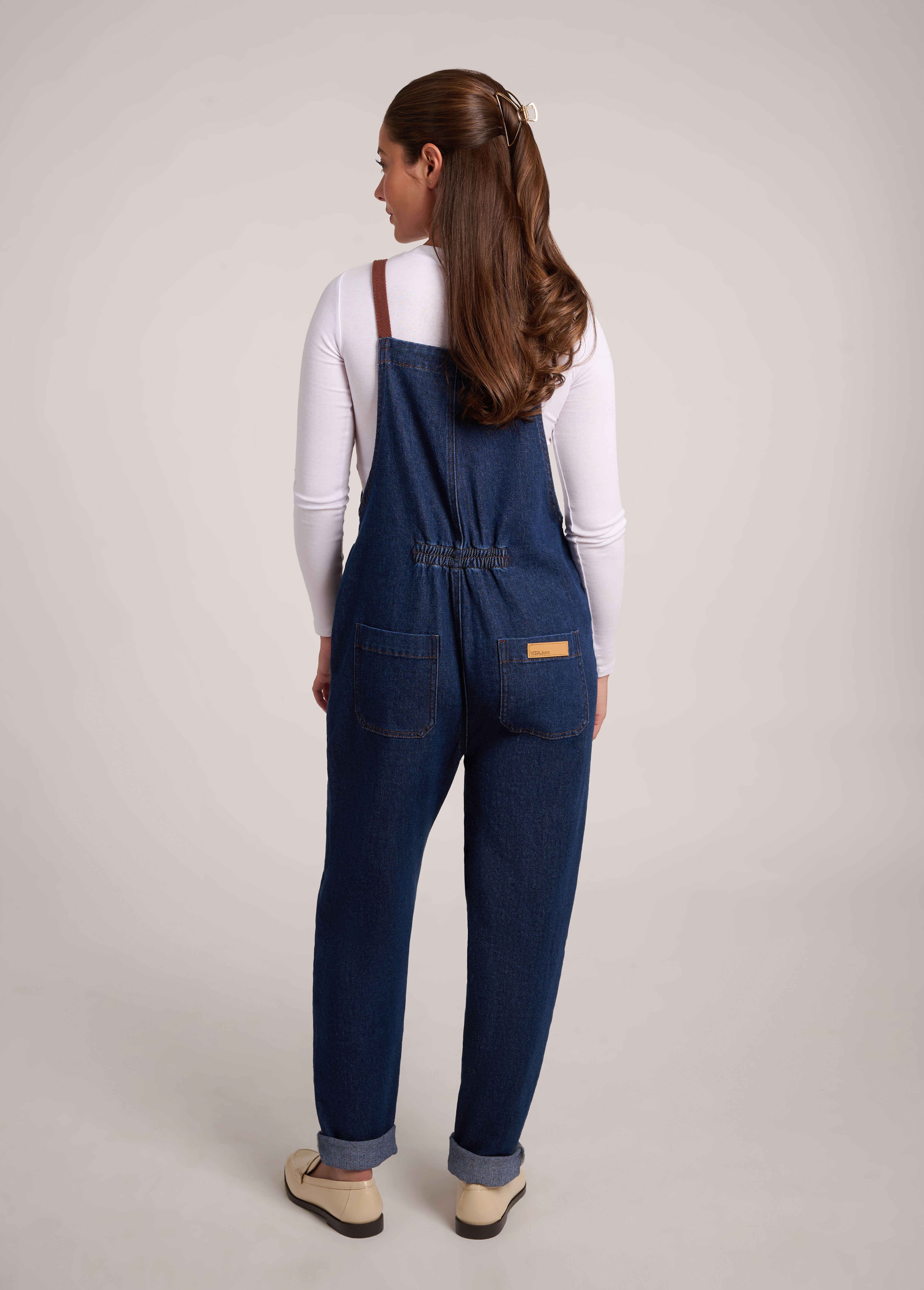 Découvrez Meena, nouvelle version de la salopette classique. Avec ses bretelles marron réglables, sa coupe décontractée et sa coupe légèrement fuselée à la cheville, cet essentiel au délavage foncé est conçu pour accompagner vos mouvements. Confectionné dans un tissu doux et extensible, il est la toile de fond idéale pour les superpositions tout au long de la saison.