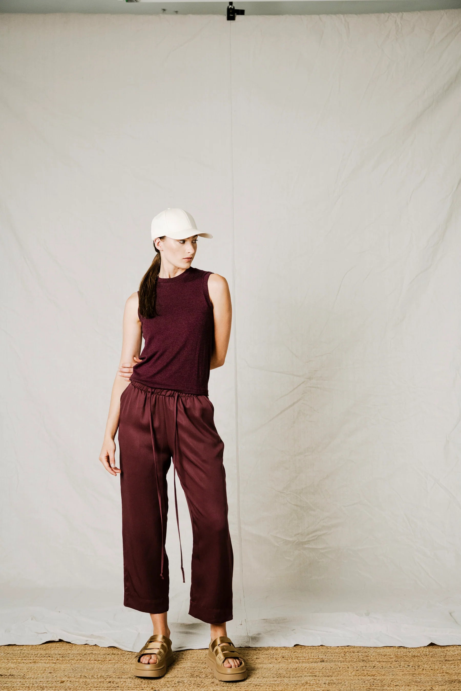 Un débardeur raffiné à col rond et à drapé souple et élégant.