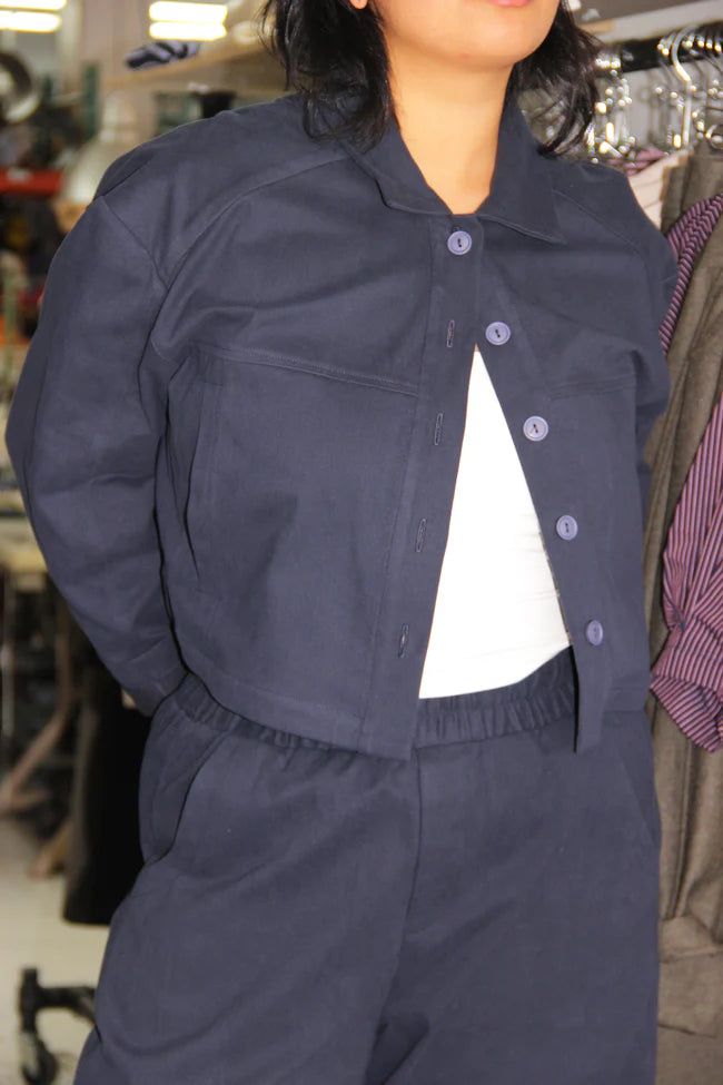 Ce veston court est un véritable coup de cœur cette saison. Sa coupe boxy et structurée avec ses deux poches latérales allie à la perfection modernité et intemporalité. Un classique revisité qui s'impose comme un indispensable.